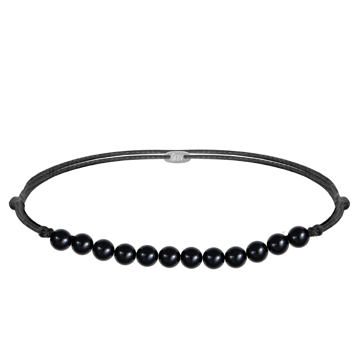 Black Big Beads Thread Silver Bracelet