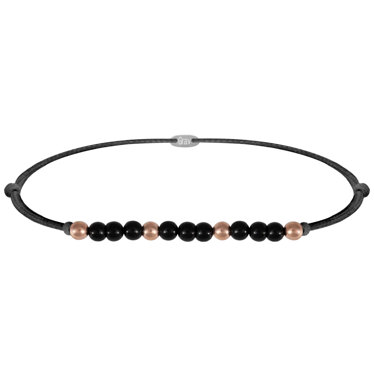 We have dreamed up another rare treasure for you. The harmonious meeting of black onyx and rose gold in a wonderful thread bracelet. Feel free to wear it to any event, but be careful! The jewelry must not be touched by chemicals or water and must also be protected from impact!