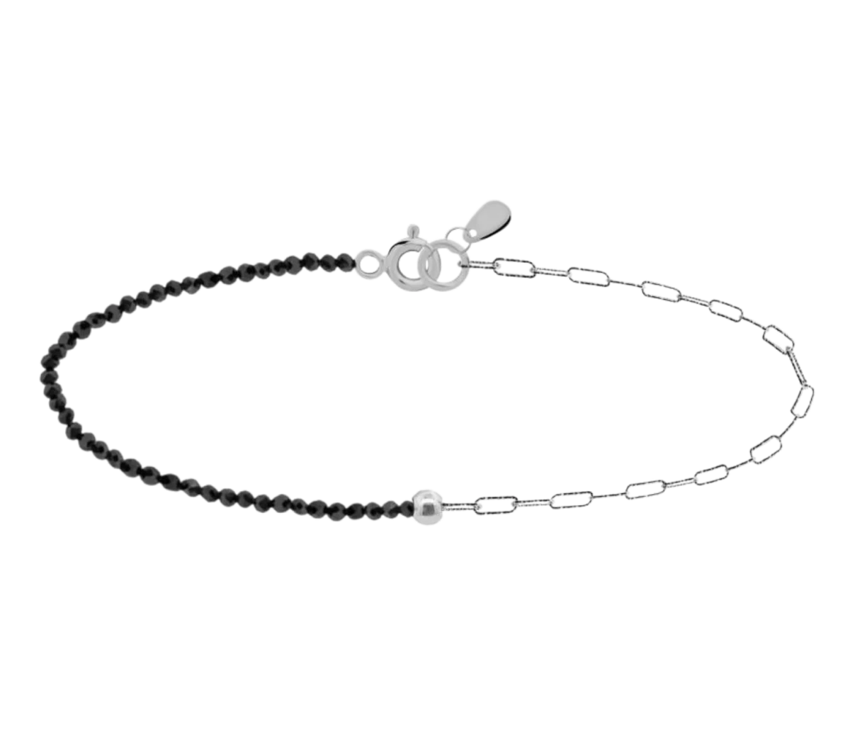 A meeting of mineral and precious metal in a piece of jewelry. The surface of the oval chain links is engraved, different from traditional chains. The size of the chain links: 3 x 7.5 mm. The spinel bracelet charms everyone with its special beauty. It is not only beautiful, but also a mineral with healing powers. Spinel highlights the positive sides of the personality. It strengthens self-confidence and helps to achieve success.