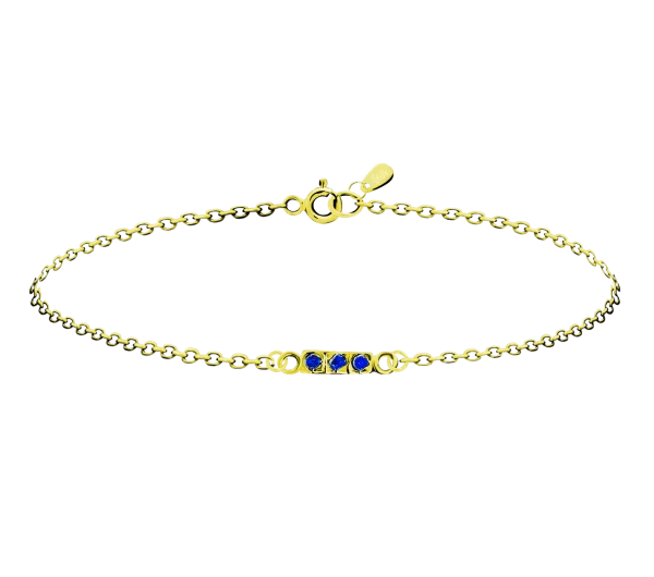 Blue Zircon 3 Gems Yellow Gold 14K Bracelet