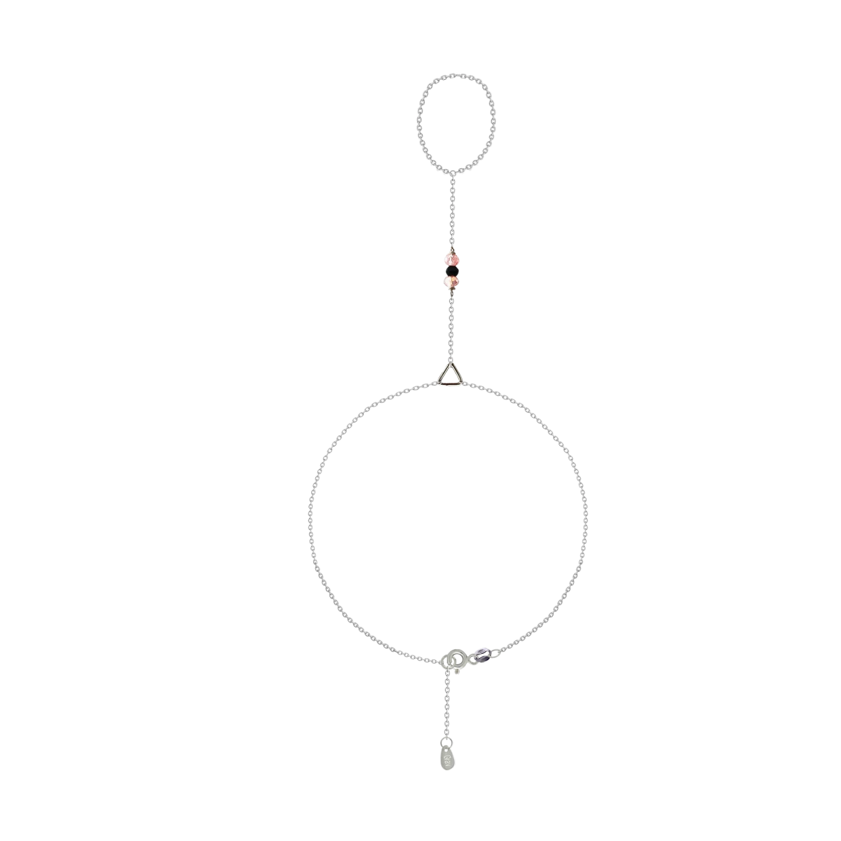 Say goodbye to boring jewelry with this stunning bracelet and ring combination, featuring a unique design - a chain adorned with colorful crystals stretching over the back of the hand - that captures everyone's attention and brings a touch of freshness and elegance to your look! Please indicate the size of the bracelet and ring in the comments, and you can facilitate the making process by measuring the length between your wrist and the finger on which you will wear the ring!