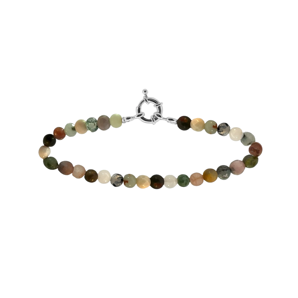 The captivating beauty of this uniquely designed bracelet is given by the brilliance of the minerals (chalcedony, agate, quartz, marble, calcite) in autumn colors; and the elegant silver carabiner further enhances the natural energy provided by the minerals and the unique appearance.