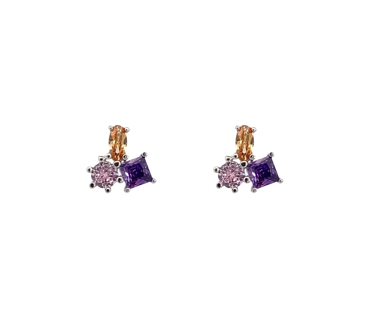 Limited collection! A piece of the Rainbow collection in purple, pink and orange colors. 18-carat white gold-plated, 925 fine silver earrings with colored zirconia stones. Available while supplies last! Be the first to buy it and add it to your summer jewelry collection!