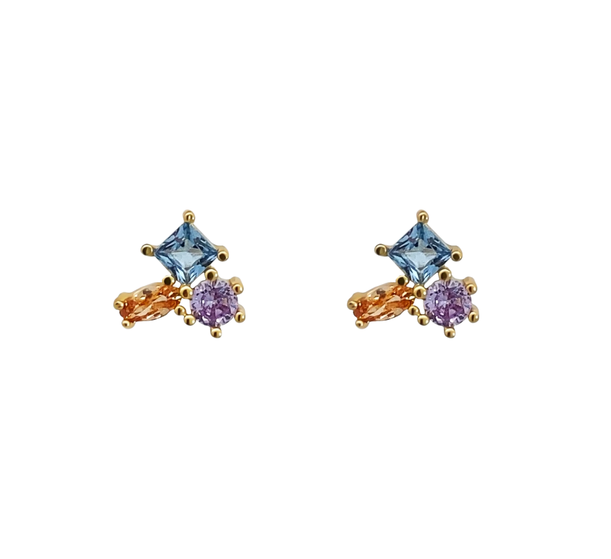 Limited collection! A piece of the Rainbow collection in purple, blue and orange colors. 18-carat yellow gold-plated, 925 fine silver earrings with colored zirconia stones. Available while supplies last! Be the first to buy it and add it to your summer jewelry collection!