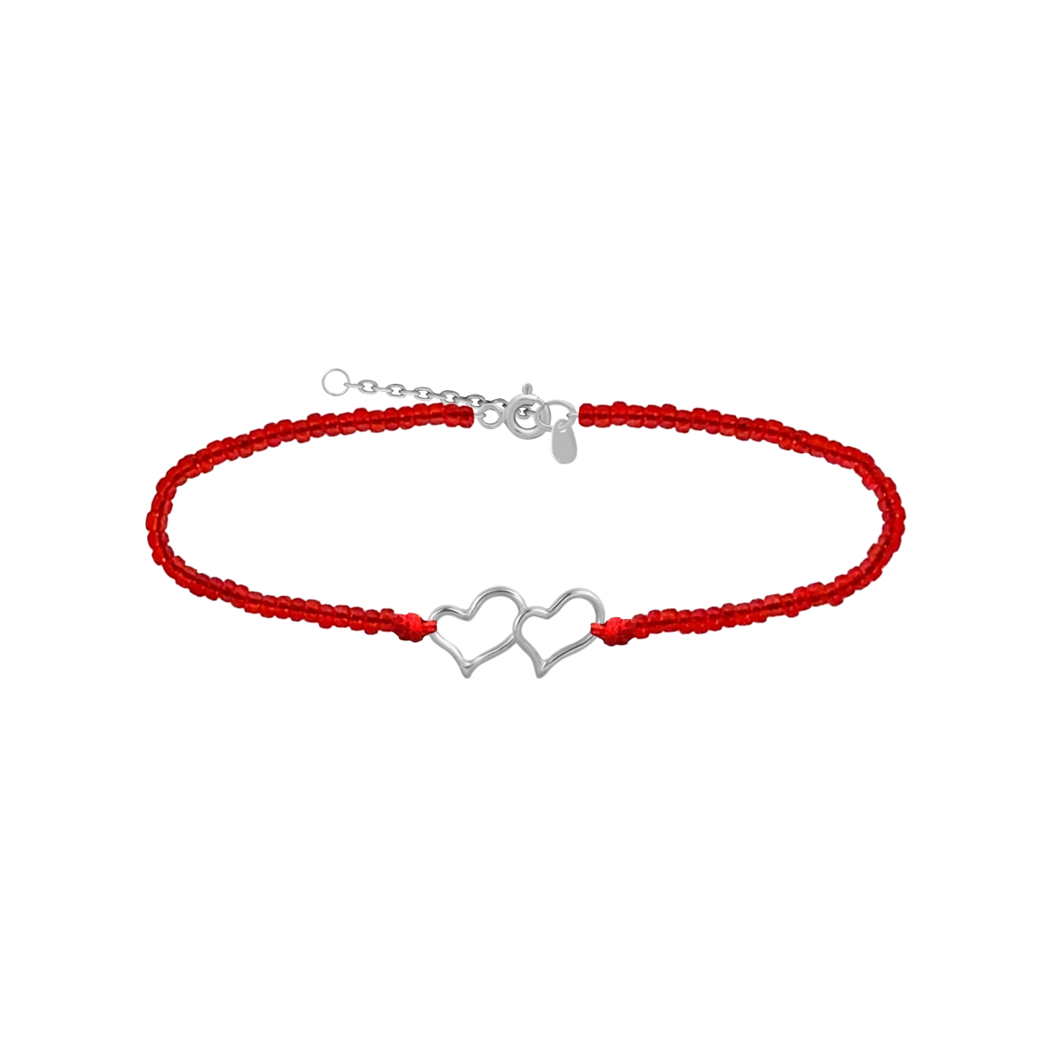 Red Seed Beads With Contour Belle Heart Pendant Silver 925 Bracelet