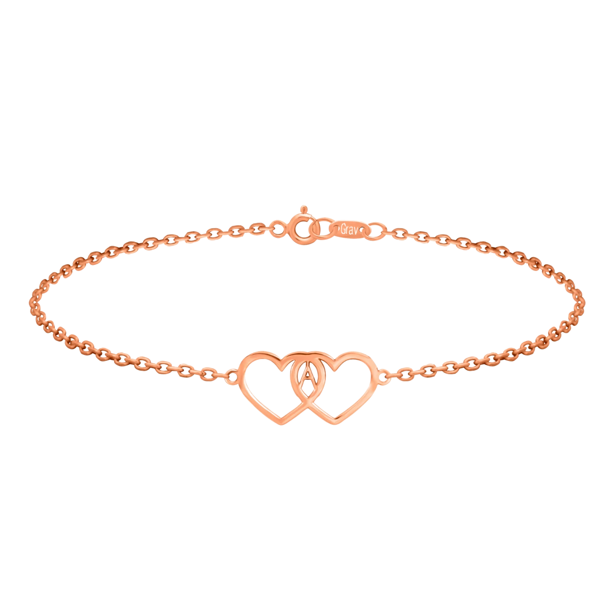 Double Contour Heart With Letter Rose Gold 14k Bracelet