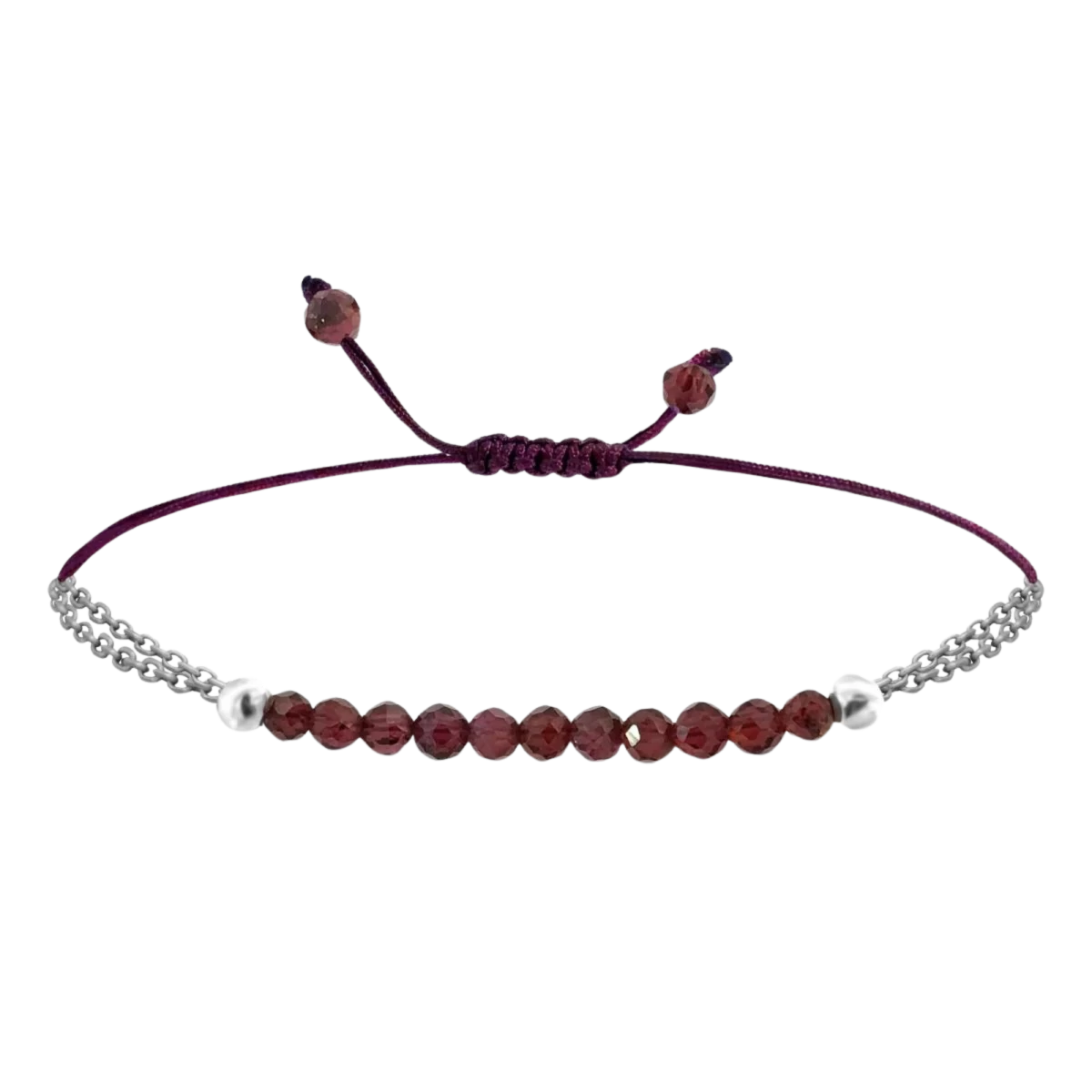 Bracelet made with garnet mineral, 925 fine silver beads, colorful, unbreakable thread and macrame technique. Garnet is the stone of help. It regenerates the body, cleans the blood, fills the whole body with vital energy and helps in self-development. It provides its owner with self-confidence and willpower, as it is a stone connected to the root chakra and life energy.