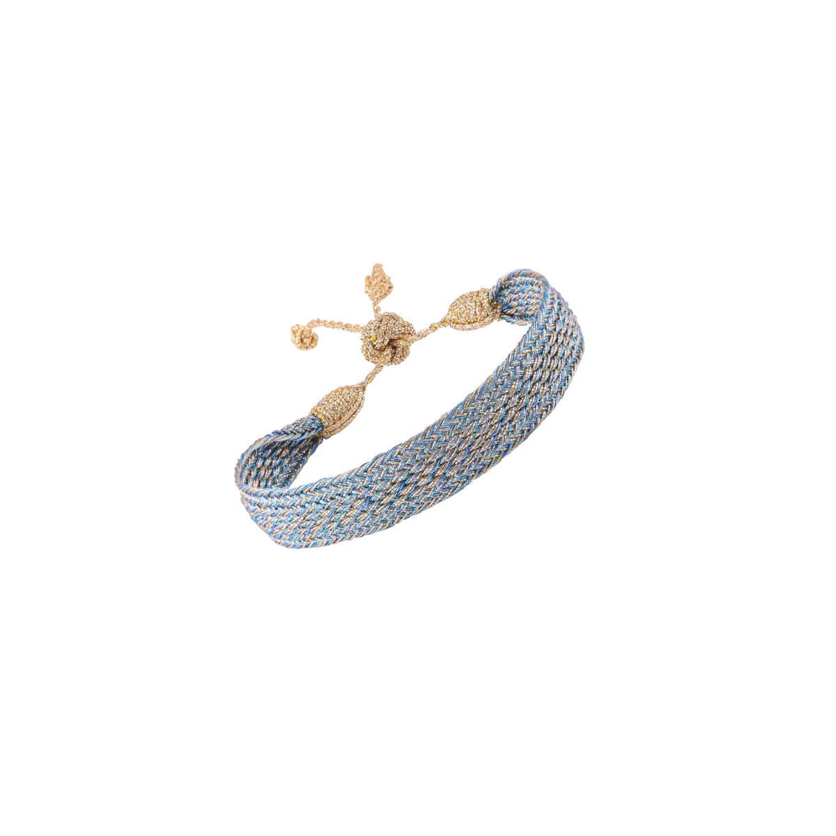 Traditional Arabic Gold Threads Bracelet Gold And Denim Color