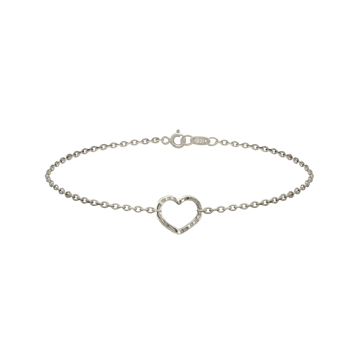 Hand Crafted Small Heart White Gold 14K Bracelet