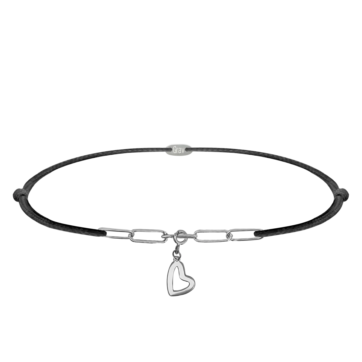 This long lasting beautiful anklet is a harmonious combination of tear resistant thread, a refined elongated link sterling silver chain, and a lovingly made outline heart pendant, find the truly sophisticated accessory for you.