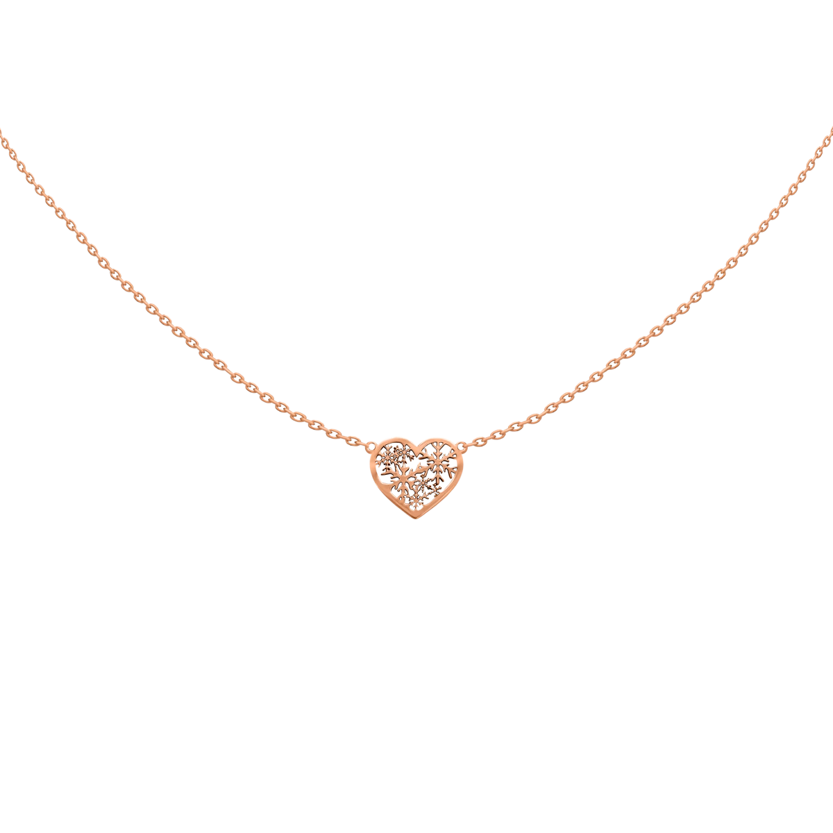 Snowflake In a Heart Rose Gold 14K Necklace