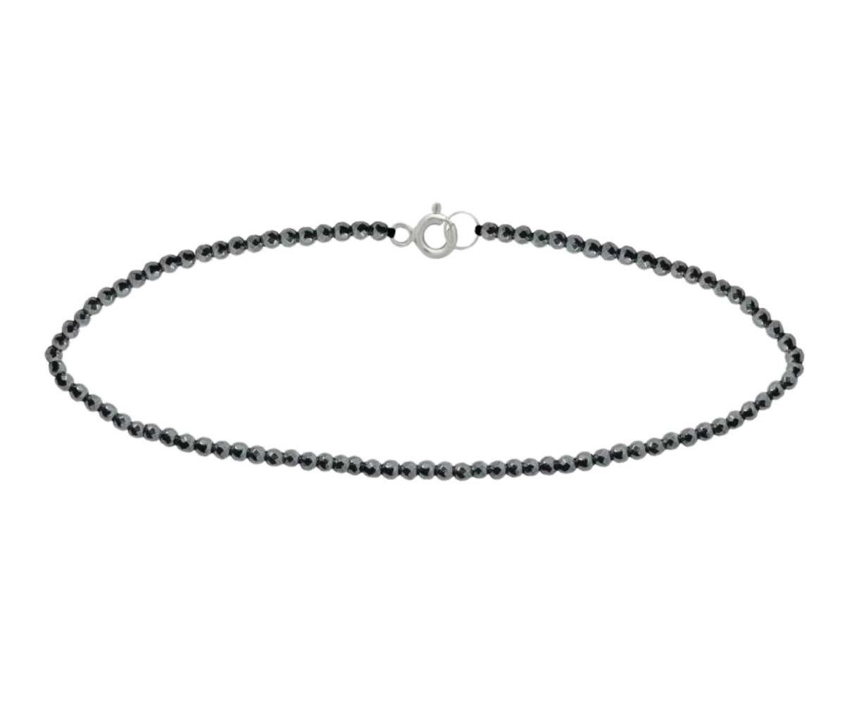 This sparkling hematite bracelet gives the wearer an elegant look as the metallic luster offered by the mineral's petrified iron oxide form is different from every angle. It harmonizes perfectly with modern and minimalist styles, highlighting the clean beauty of natural materials. According to esoteric traditions, it helps balance body and soul. The size of the minerals: 2 mm, the bracelet can be closed with a silver 925 clasp.