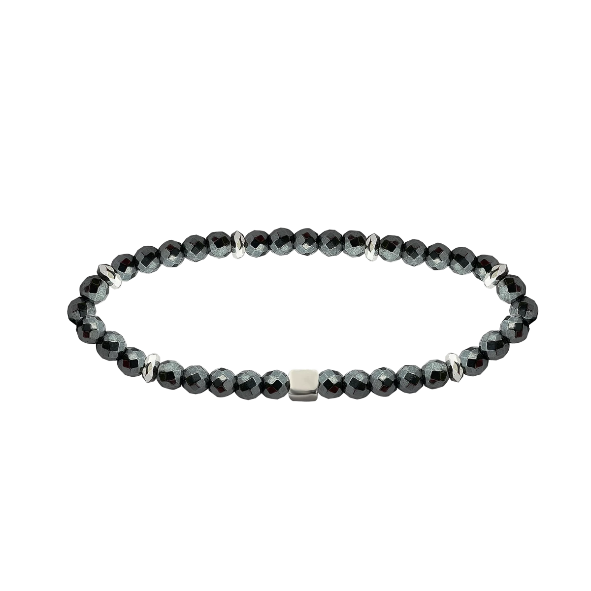 When the shine of faceted hematite stones meets the accents of 925 sterling silver in this men's bracelet, a unique and masculine piece of jewelry is created that attracts every gaze. It's the perfect choice for those who prefer a distinctive and powerful appearance.