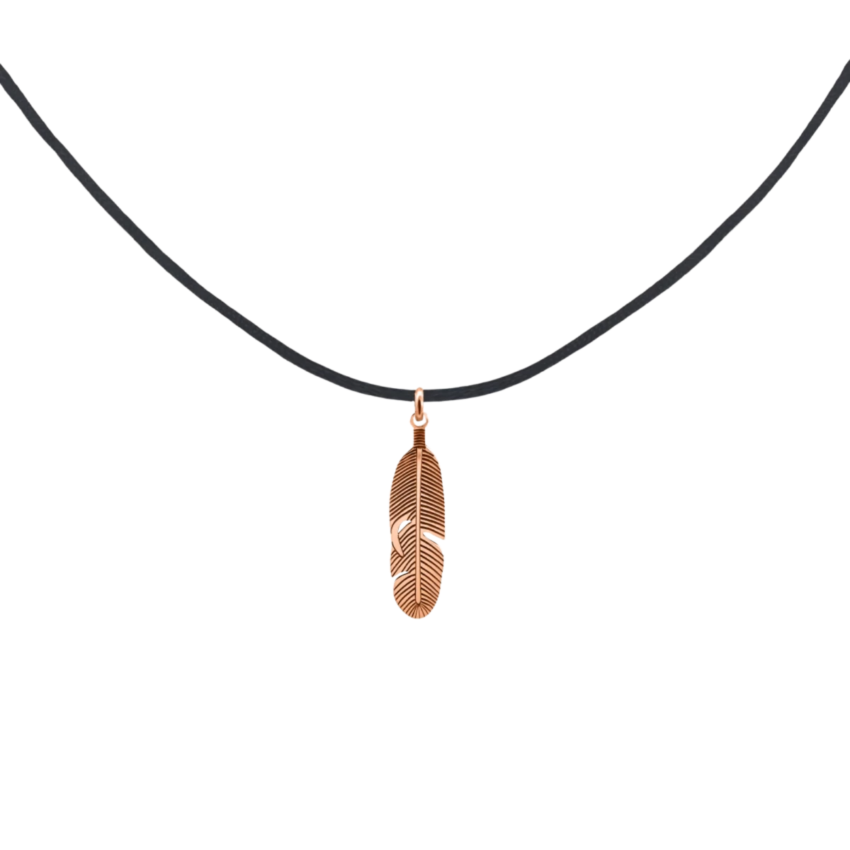 Feather-shaped pendant strung on thick thead with a 14-karat rose gold clasp. A very popular piece of our men's collection
