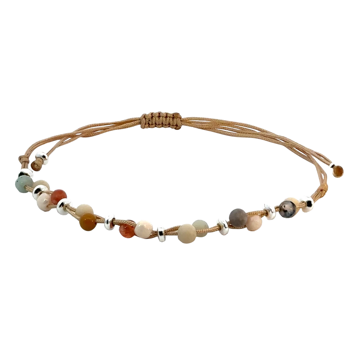 Macramé Colorful Gemstone Sterling Silver 925 Ankle Bracelet