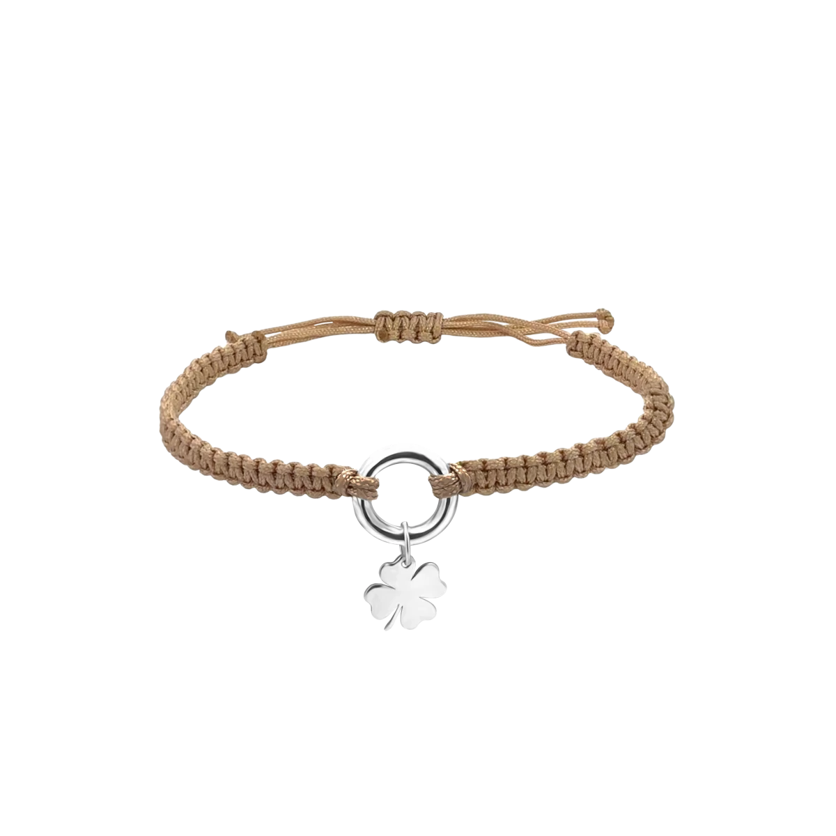 Macrame Contour Cirlce Hanging Clover Silver 925 Bracelet