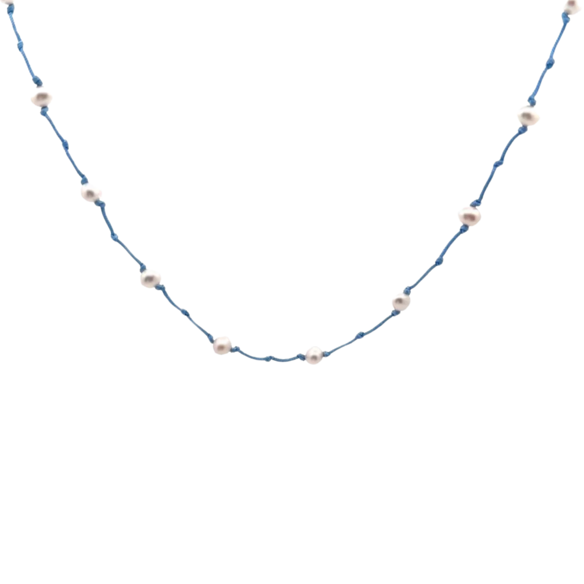 Hand-knotted necklace strung on colored non-breakable thread, with 15 pieces of pearls, silver 925 clasp. Get ready for summer with us, enjoy the sunshine and show off your new, fashionable necklace, which you can combine with a knotted bracelet or anklet - even in a different color!