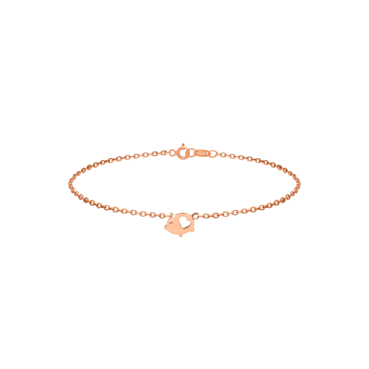 Piglet pendant decorated with a heart motif, with which you can conjure up a little luck in your child's life. This pendant is one of the favorite pieces of our collection designed for the little ones, which is available both as a yarn bracelet and as a necklace and bracelet. You can choose the chain in 2 sizes: 11.5-13 cm, 13-14.5 cm.