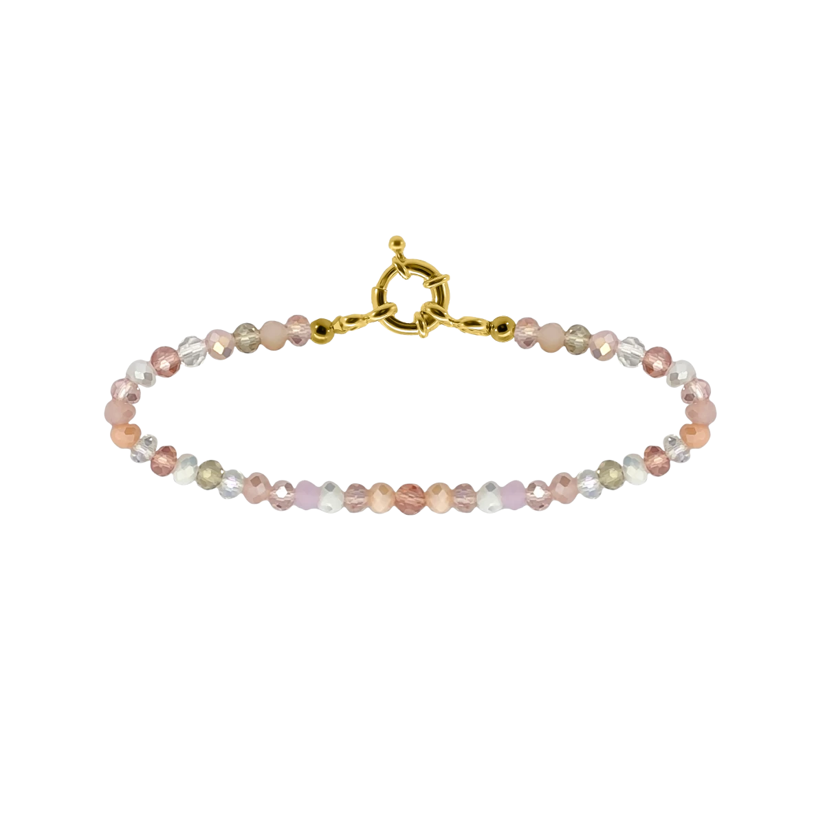 The uniqueness of this bracelet lies not only in the dazzling array of pink and white crystal shades but also in the elegant 18-carat yellow gold-plated 925 sterling silver clasp, which exudes luxury and sophistication on every occasion.