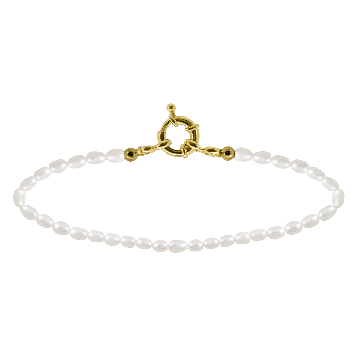 White Freshwater Pearl Rice Shaped Yellow Gold Plated Silver 925 Anklet