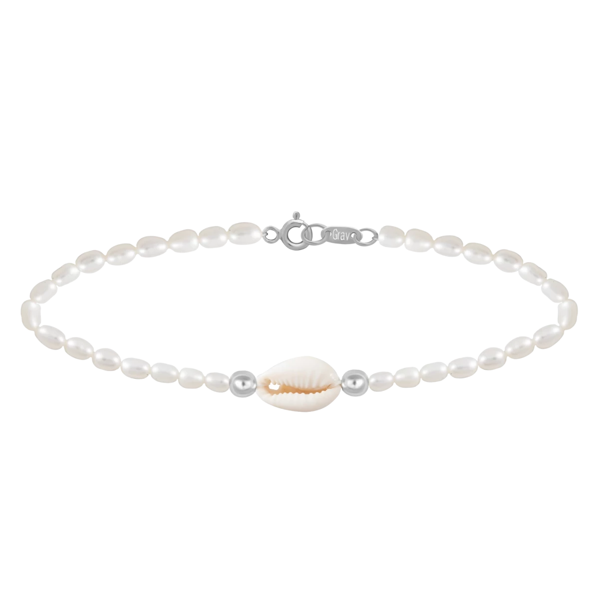Shell and White Freshwater Pearl Silver 925 Beads Bracelet