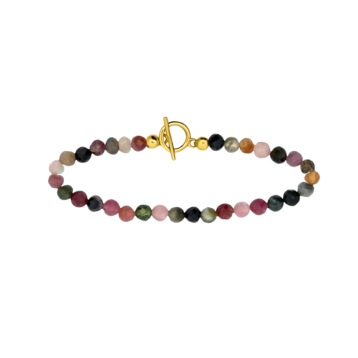 The tourmaline bracelet provides comprehensive protective energy, while the 18-carat yellow gold-plated silver clasp highlights the natural beauty and exclusivity of the mineral with a modern aesthetic.