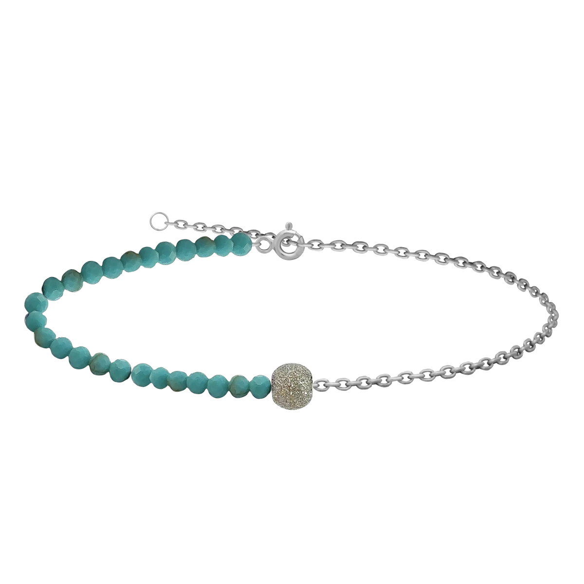Turquoise Gemstone Anklet in Sterling Silver 925 with Chain