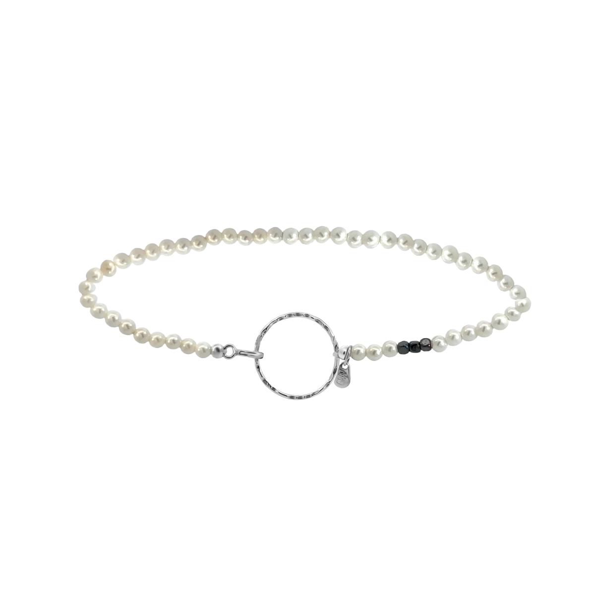 White Pearl Hand Crafted Circle Silver 925 Bracelet